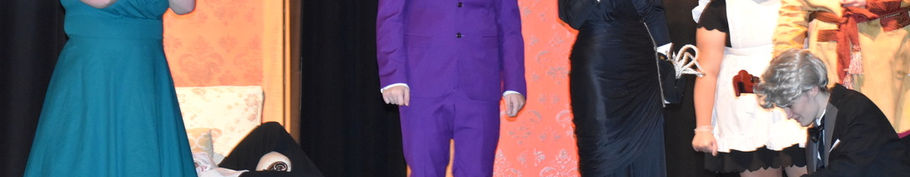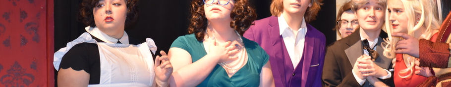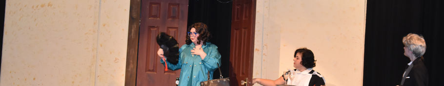 S.R Mohen as Mrs. Peacock in Clue! Onstage.
